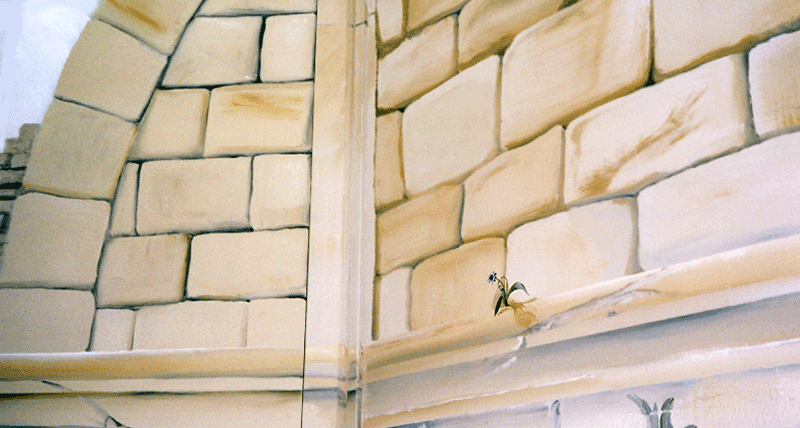 Die Malerei versöhnt alles: Rechts verputztes Mauerwerk, links Kunststoff.