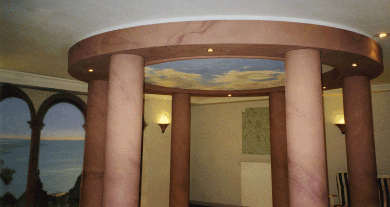 Das Rondell Der Ring ist aus Sperrholz, die Säulen aus Stahlrohr. Durch den gemalten Stein wird eine Einheit daraus.